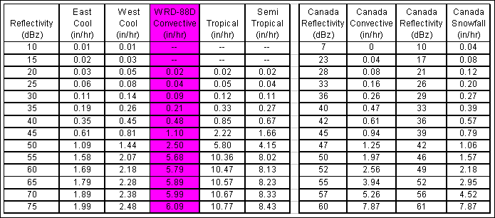 reflectivity data from one of the WSR-88D class radar systems (NEXRAD), the