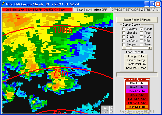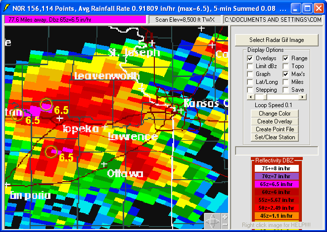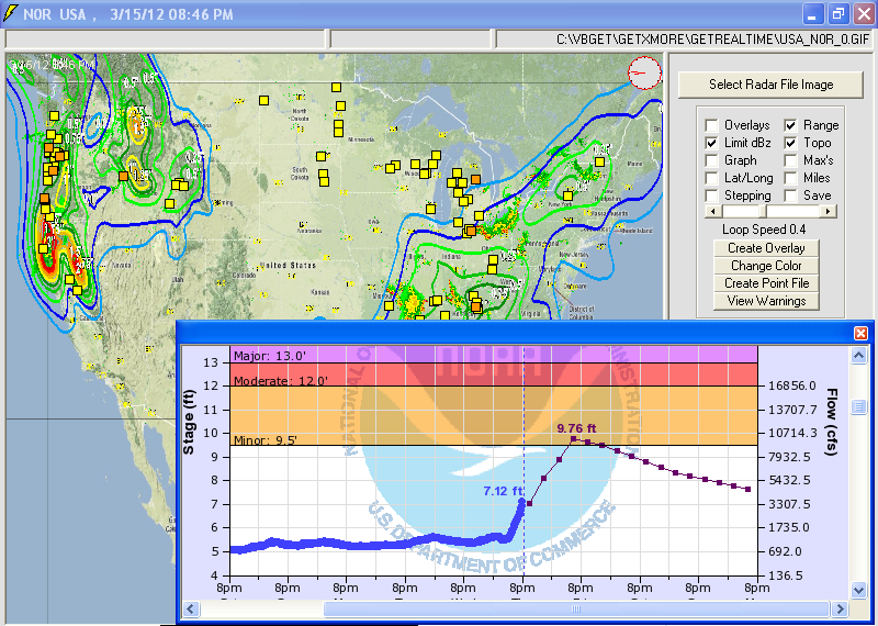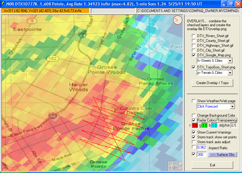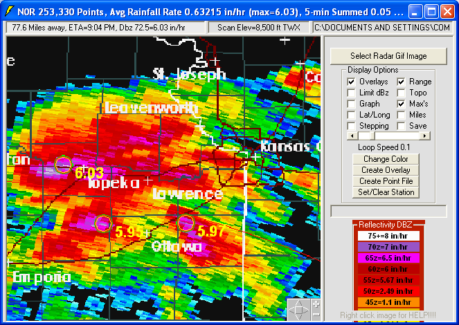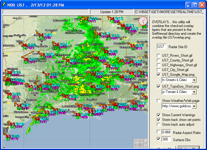 files and 0.5 dBZ long range higher resolution images. Goggle Map overlays,