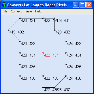 Determine and save boundary area pixel locations on the radar image.