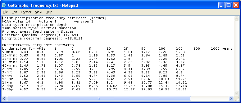 Depth-Duration-Frequency tables.