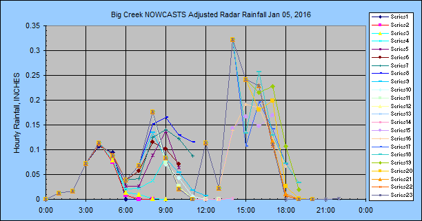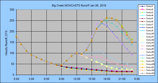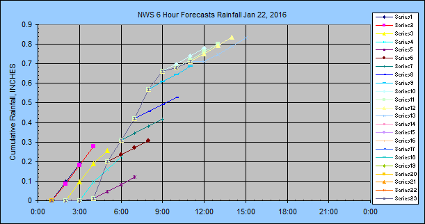 the NWS 6-hour forecast with a distribution, my adjustments for hours 1, 2 and 3