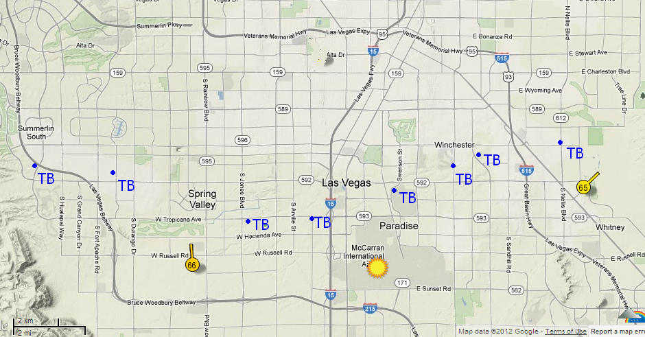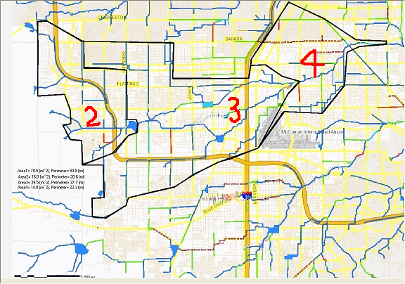 latitidude and longitude for points in Las Vegas Valley. Now find 2