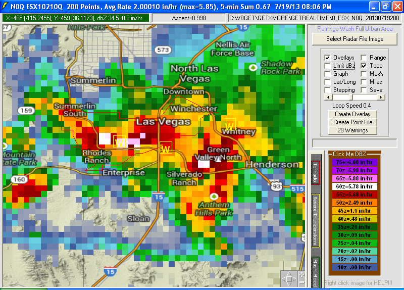 The Las Vegas ESX radar is only 34 miles from the Flamingo Basin centroid but