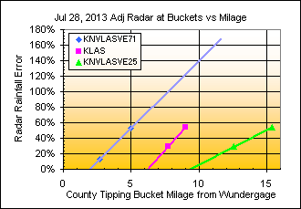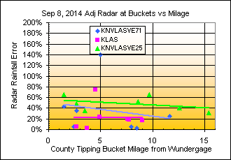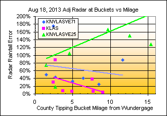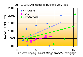 County Tipping Bucket is plotted against its distance to the Wundergage used to
