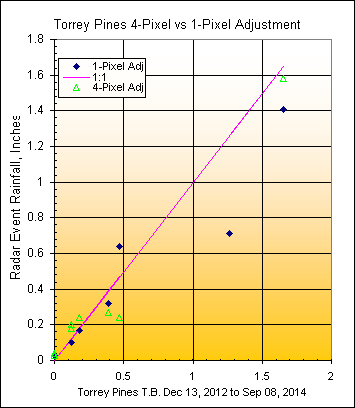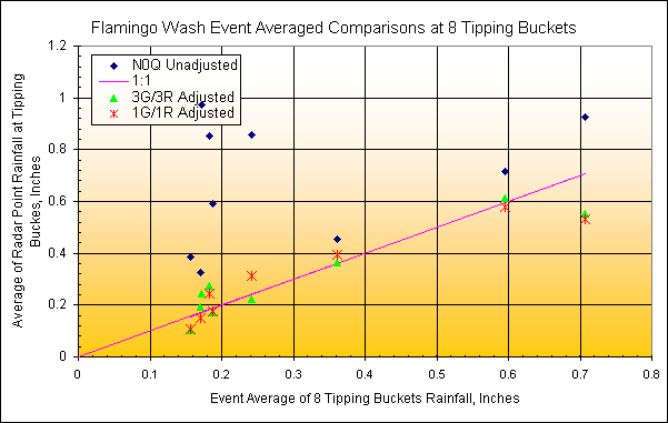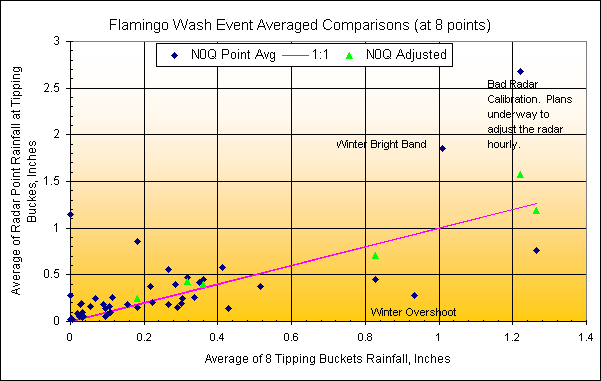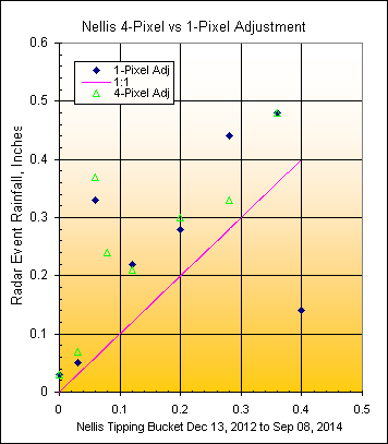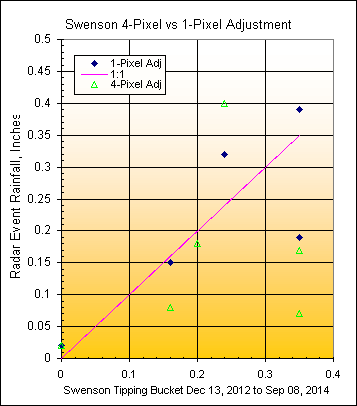 rain gages in the 1 km adjustment radar pixel would improve the adjustment? Ha!