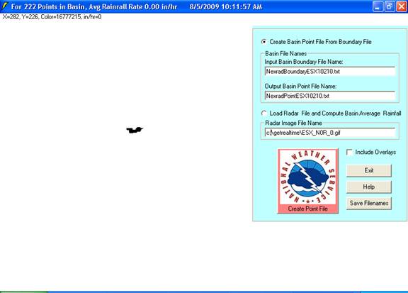 GetNexrad.exe, enter the file names and select ‘Create Basin Point File from