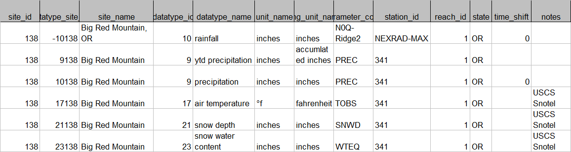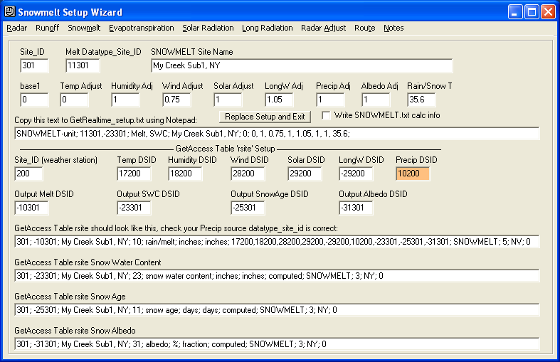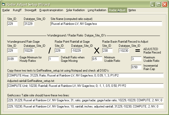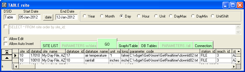 your GetRealtime_setup.txt file and table Rsite, then build your