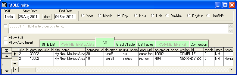 the needed info to table Rsite. Also some Wizards will add all the needed info