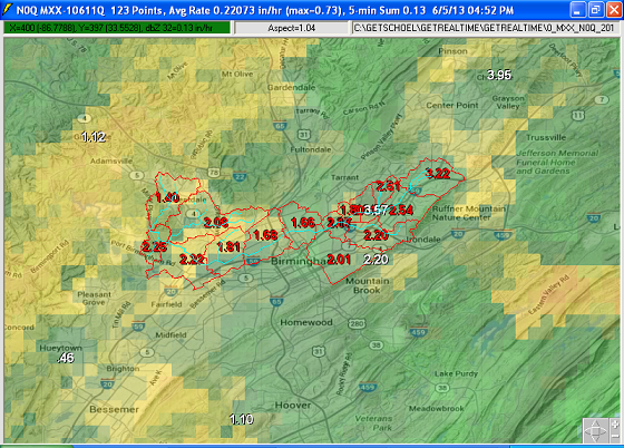 you can outline your district boundary and compute the 5-minute, hourly, and